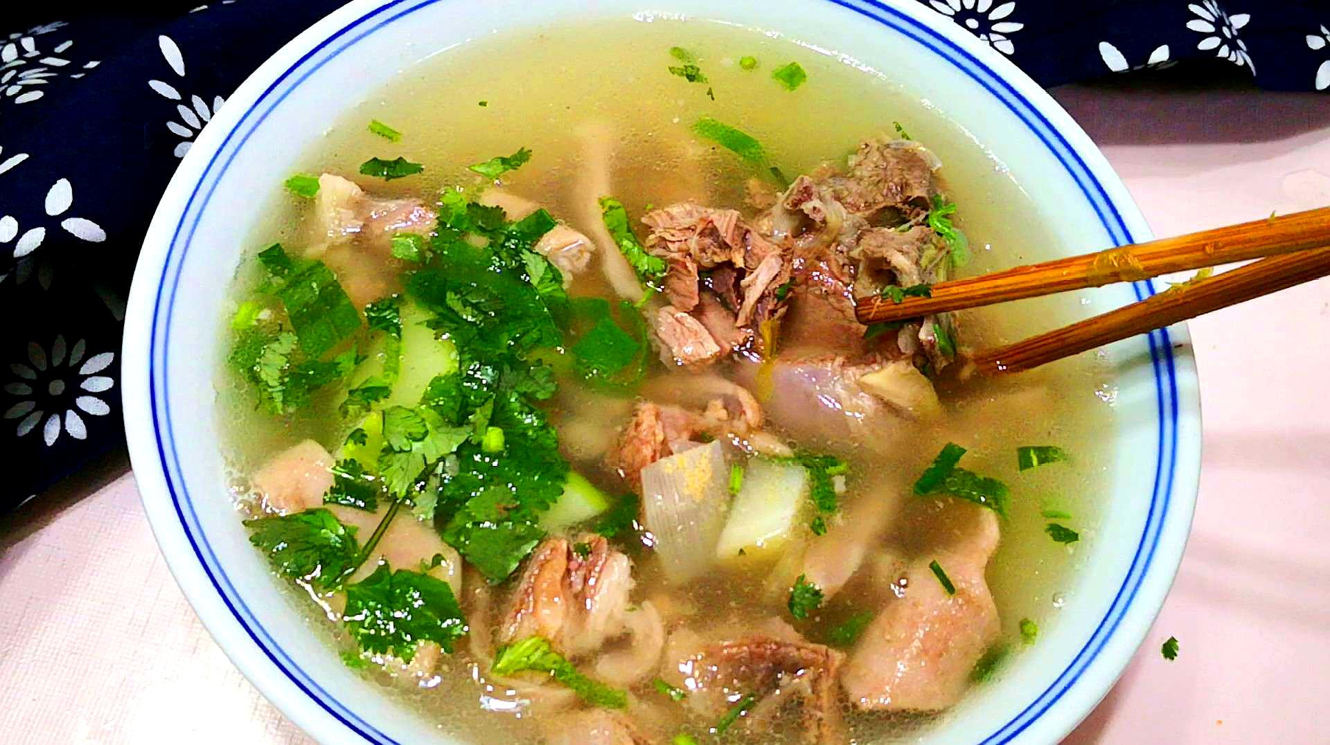 羊肉汤是我国中部地区常见的菜肴,平常都是搭配面食来吃,这道汤做法不复杂,滋味却很足,搭配拉面堪称一绝。我们通常选用高压锅来做,因为能够大大的节省时间,煮出来的汤汁也更加香浓鲜美。炖煮后的羊肉软烂,满是胶原蛋白,把它撕成肉丝,再撒上大把孜然、干辣椒,加点麻辣调料,瞬间就勾起了人们的食欲。