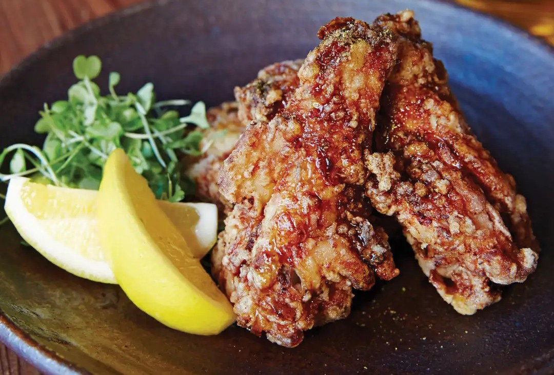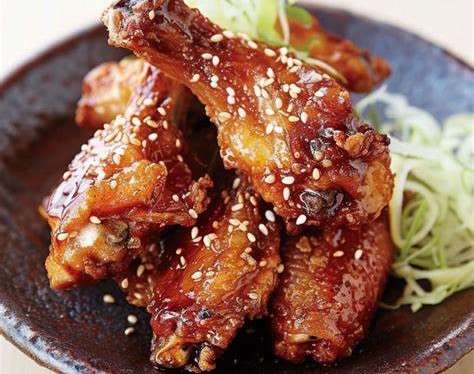 3、炸制装盘:在大锅中倒入菜籽油,开中火将油温烧至 160℃,把腌制好的鸡翅均匀裹上一层土豆淀粉,轻轻抖掉多余的淀粉,避免炸制时淀粉结块。将鸡翅分批放入锅中,避免一次放入过多导致油温下降。炸至鸡翅表面金黄酥脆,捞出放在厨房纸上沥干多余的油。趁热将炸好的鸡翅倒入提前准备好的酱汁中,迅速翻拌,让每块鸡翅都均匀裹上酱汁,然后装盘,撒上花椒粉提味,最后摆上柠檬角,这道美味的日式炸鸡就大功告成啦!