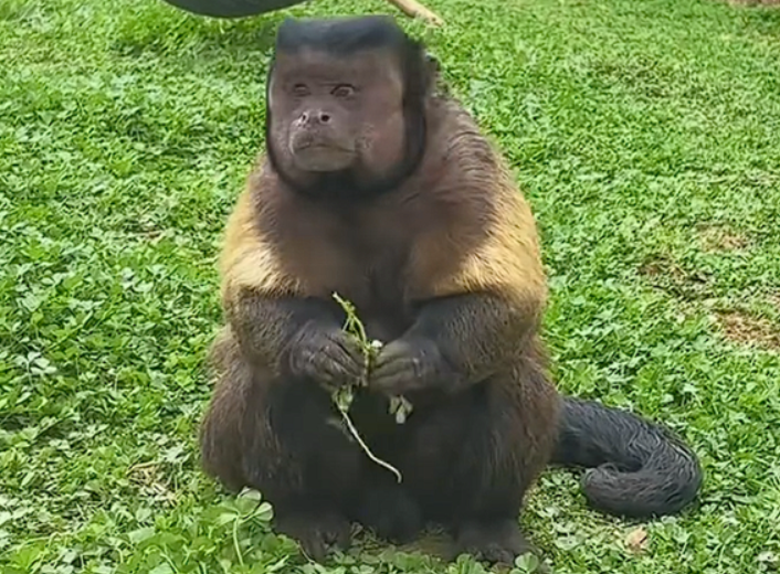 现在 “大壮” 直接晋升为猴 “星”,园区都拿它的照片做了一堆超搞笑的 “吗喽” 表情包,在网上疯狂流传。别看它平时晒晒太阳、砸砸核桃,一副呆呆的样子,实际上聪明着呢!作为卷尾猴科的成员,它可是猴界 “高智商代表”,别的猴子打不开核桃只会用嘴咬,“大壮” 却会随手抄起石头砸开硬壳,主打一个智取。