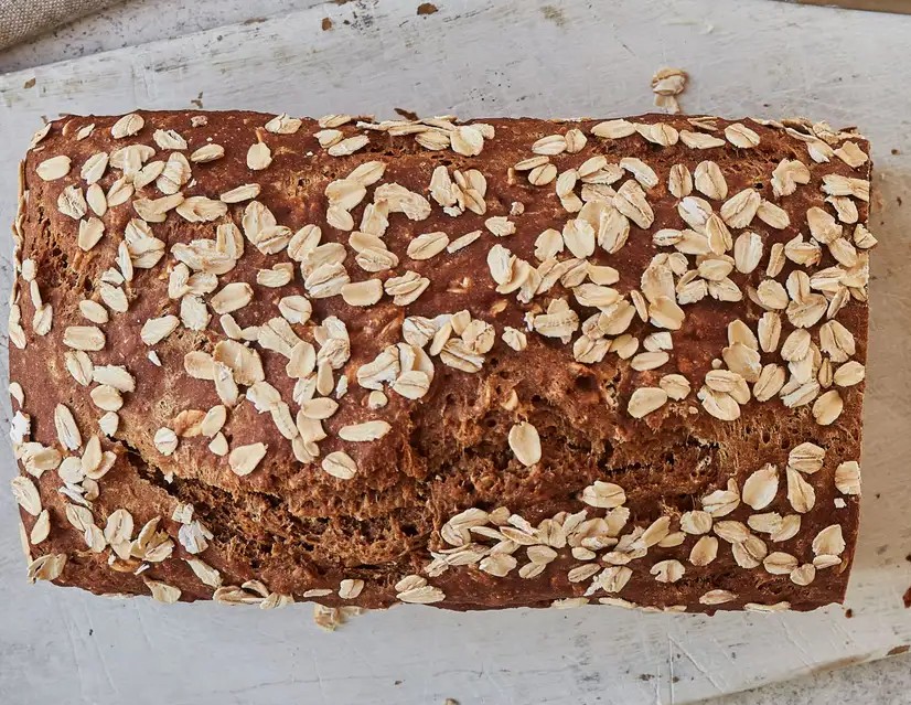 2、混合食材:找个大盆把全麦面粉、普通面粉、燕麦片、小苏打和细盐全部倒进去,拿起刮刀画圈搅拌均匀。放入 15g 冷黄油,用切面刀或直接上手,像搓衣服一样把黄油和面粉搓成小疙瘩,抓一把能成团就停手。接着倒入牛奶、红糖浆和黑啤,换硅胶刮刀温柔翻拌,看到干湿材料抱成团就立刻收手,过度搅拌面包会变紧实哦!把面糊倒入模具,用刮刀把表面抹得平平的,最后撒上厚厚一层燕麦片做装饰。