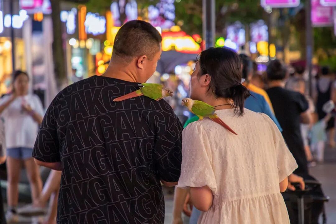 点评:画面的幽默感来自人物与宠物鸟之间在情态上所呈现出的相似性,而这一精彩瞬间离不开作者对生活细致入微的观察。热闹的街头、恰当的瞬间,需要正确的判断和快速的反应,虚化的背景以及夜色街头,带来真实感,也确保了主体的视觉吸引力。