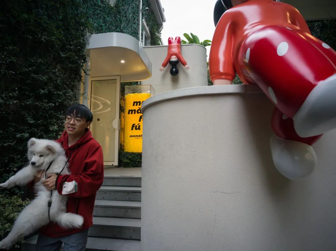 点评:作者通过侧面角度集中刻画宠物狗的憨萌形象,并通过对主人的局部裁切凸显亲密关系,同时增加观者的联想空间,而侧身与宠物狗握手的人物情态刻画同样生动,带来街头“温度”。
