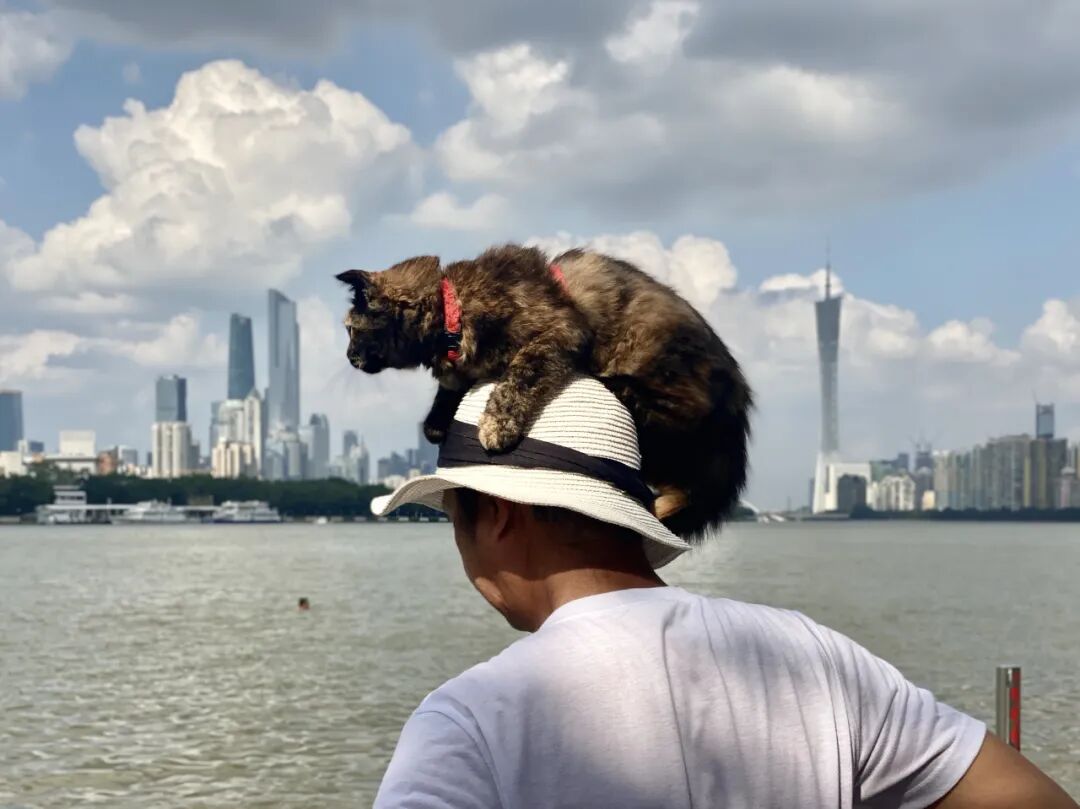 点评:作者近距离捕捉到宠物与主人之间亲密自然的情态,光影效果的营造增加了主体视觉上的生动性,使其形态更加吸引人心,宽阔的水面和城市背景在适当的虚化效果下为主体提供了真实的空间衬托。