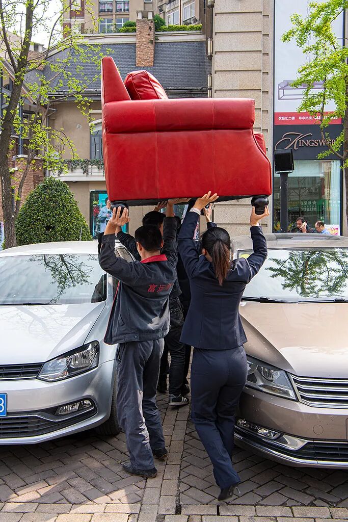 点评:几人合力托举着沙发从两车之间穿行,红色沙发在略显灰暗背景下,极为夺目,形成强烈视觉反差。人们步伐协调,专注且努力的背影,留下更多的想象空间。这一场景赋予沙发“行走”的动态感,巧妙捕捉到生活中那些不寻常的瞬间。