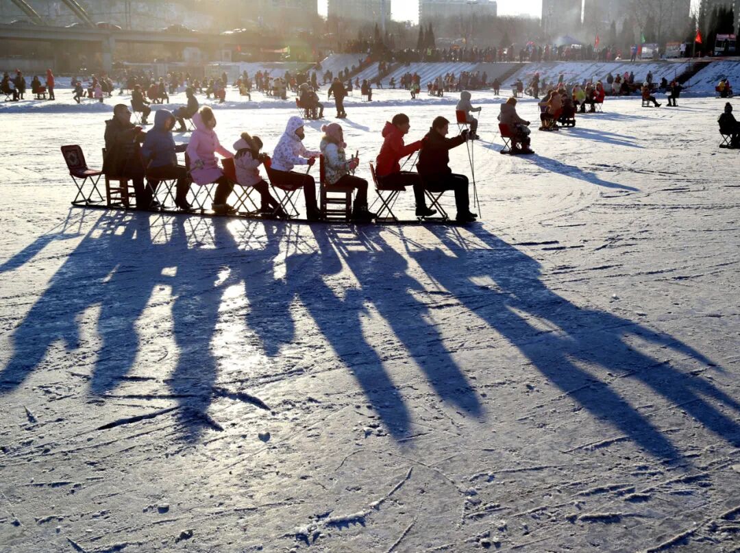点评:逆光视角将冬日冰场的独特魅力展现得淋漓尽致,影子成为画面的视觉中心。数个冰车整齐排列成一列,几人齐心协力撑杆,在冰面“破浪前行”。这不仅是一张记录冰上运动的照片,更让人感受到团结协作与冬日暖阳带来的双重温暖。