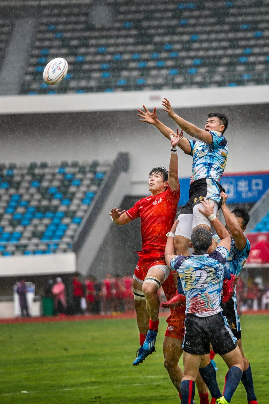 点评:照片极具张力,细密雨丝为画面蒙上一层朦胧感,反衬出激烈的竞技氛围。画面右下方的双方运动员身姿矫健,表情专注急切,肌肉紧绷,全力争抢飞来的皮球。尤为吸睛的是一位运动员在队友的合力托举下高高跃起,试图接球,从左侧飞入画面的皮球呈悬浮状,与人物形成呼应之势。