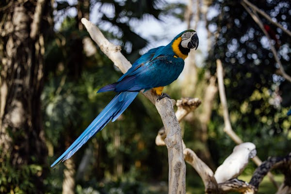 体型最大的鹦鹉之一,比如紫蓝金刚鹦鹉能有 1 米长,羽毛蓝得像宝石。脸上有块没毛的皮肤,尾巴长长的,嘴特别厉害,能咬开硬坚果,所以笼子得选结实的,不然容易被它拆了。