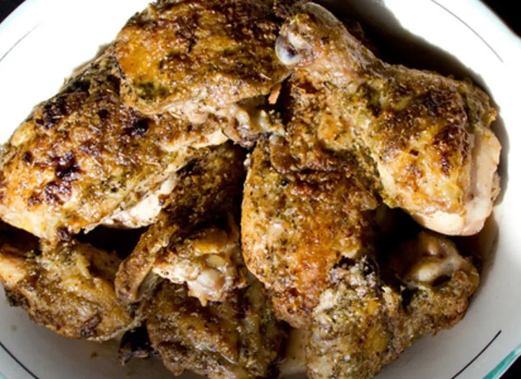 第四步:从烤箱取出热锅,立刻倒进红酒醋,这时候会 “滋啦” 一声冒热气,快速用勺子把醋汁淋在鸡肉上,1 分钟后汤汁收得稍微粘稠就关火。端上桌时鸡皮带着焦香,咬开后肉汁里裹着芝士的咸香和醋的微酸,连骨头缝都想嗦干净!