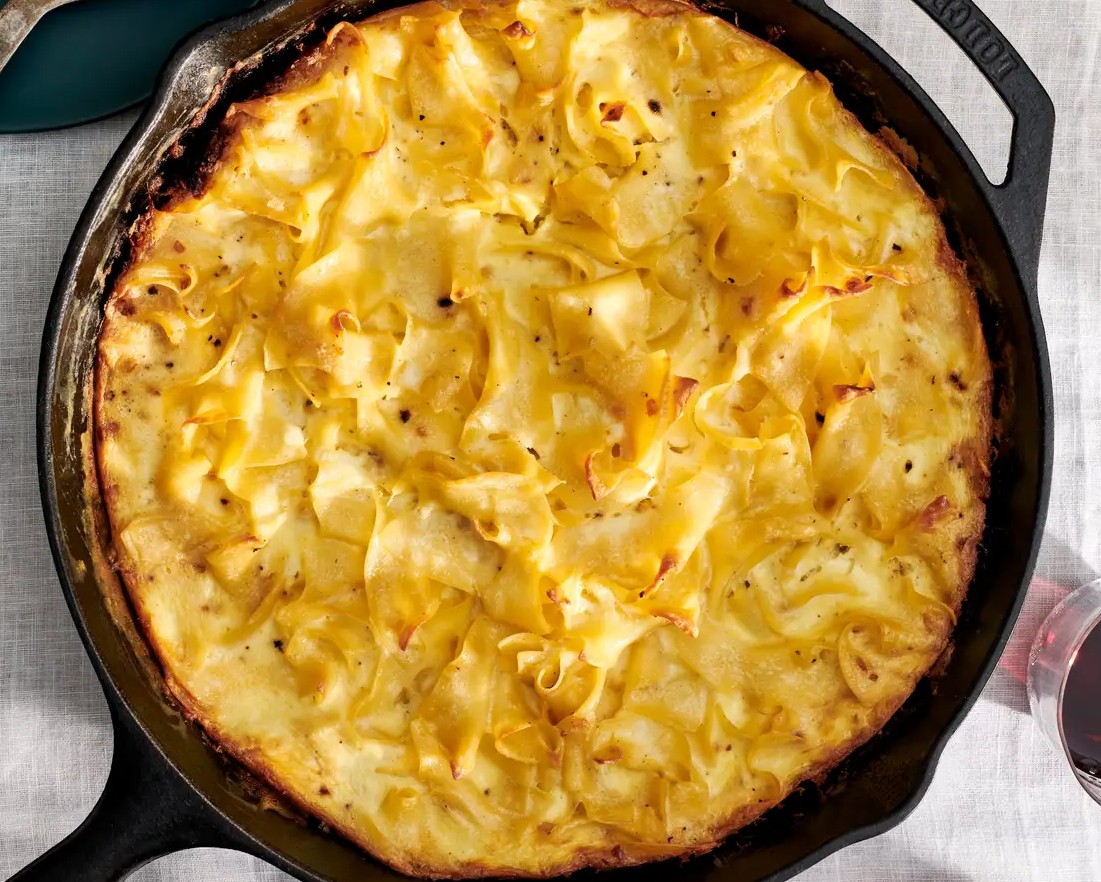 刚出炉的意面砂锅还在铸铁锅里滋滋作响,表面那层焦脆的面条蘸着底下湿润的蛋奶酱汁,每一口都有蒜香、洋葱甜和谷物的麦香在舌尖碰撞。特别建议搭配一碟酸黄瓜或凉拌小菜,解腻又开胃。还可以在烤之前撒一把切碎的熟芝麻或葱花,既有中式点缀的美感,又能增添香气 —— 这样一道中西合璧的节庆主食,试过的朋友都说比传统甜口更合咱们的胃呢!