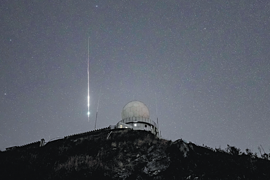 与其他流星雨相比,象限仪座流星雨有着独特的魅力。其流星体速度中等,约为41千米/秒,这使得流星在划过天际时,留下的轨迹既不会转瞬即逝,让你来不及捕捉,也不会缓慢得失去那分惊艳感。而且,它的流星亮度较高,亮流星众多。更令人期待的是,极大值时,还常会伴有非常明亮的火流星出现,那一瞬间的光芒,如同白昼,让人不禁感叹宇宙的神奇与壮美,观赏价值极高。想象一下,在寒冷的冬夜,你置身于远离城市喧嚣与灯光污染的地方,抬头仰望星空,每小时能看到近百颗流星划过,将是多么令人难忘的场景。2025年1月3日至4日,象限仪座流星雨极大值出现,许多天文爱好者抓住了这次绝佳机会,成功拍下了美丽瞬间。我们可以借助多款天气预报App,提前查询流星雨极大值前后几天的天气情况,挑选晴朗无云的夜晚。关注卫星云图能让我们更直观地了解云层的分布和移动趋势,确保拍摄当晚不会被云层遮挡视线。该信息可以在中央气象台官网或专业的气象数据采集网站获取。月朗星稀,月亮的亮度对流星雨的拍摄影响很大,我们可以提前了解月升月落的时间,为拍摄创造更有利的条件。一个理想的拍摄地点,能极大地提升拍摄效果。城市里灯光璀璨,光污染严重,会大大降低流星的可见度。所以我们要远离城市,前往郊外拍摄。我比较喜欢去我们本地的莲台山或红尖山的山顶,都是光污染比较少的地方。而且山顶拥有广阔的视野。但要注意,山顶夜晚风大温度低,一定要做好防寒防风措施。相机方面,优先推荐全画幅相机。全画幅相机的感光元件面积大,在暗光环境下表现出色,拍出的照片噪点少、画质更细腻。冬季夜晚气温极低,所以相机的保温套、加热装置以及备用电池等,都是必不可少的。我们还需要准备一支坚固稳定的三脚架,长时间曝光需要一个稳固的支撑,保证相机不晃动。选择大光圈镜头,F2.8以上为佳。我一般使用FE 24mm F1.4或FE 35mm F1.4来拍摄。更广的镜头虽然能拍摄到更大的夜空,但拍到的流星会显得比较细小,而且画面会有畸变。巧妙融入地景,能让画面更具层次感和故事感。我们可以选择一些具有特色的地面物体作为地景,比如连绵起伏的山脉,在星空的映衬下,显示出雄伟的轮廓;古老的建筑,承载着岁月的痕迹,与流星的短暂形成鲜明对比。这次拍摄,我选择在红尖山顶的雷达站旁拍摄,当耀眼的火流星划过雷达球,让人产生遐想。在拍摄星空时,自动对焦往往难以准确合焦。如果有月亮,那么可以自动对焦月亮后,锁定对焦即可。没有月亮的时候,我们就需要手动对焦,把焦距扭到无穷远,这个位置通常在镜头对焦环的最远端。对于单反相机,我们可以通过取景器观察,当星星看起来清晰锐利时,就表示对焦成功了;如果是无反相机,建议打开实时取景显示,将画面放大,仔细调整对焦环,直到星星的成像达到最清晰的状态。在实际操作中,我们还可以以夜空中最亮的那颗星作为参考,对其进行对焦,然后锁定,再将镜头对准流星雨可能出现的区域,这样能确保拍摄到的流星都是清晰的。一般来说,拍摄的时候我们要将光圈开到最大,大光圈能让流星的亮度更高,在画面中更加明显。感光度要根据现场的黑暗程度以及曝光需要进行调整,通常设置在ISO1600到ISO4000之间。如果拍摄地点环境非常黑暗,感光度可以适当再调低一些,减少照片中的噪点,提高画质。快门时间不宜过长,一般控制在8-15秒。如果快门时间过长,星星会在画面中形成拖线,影响拍摄效果。这些参数不是固定不变的,需要根据实际拍摄情况灵活调整。比如在拍摄过程中,发现照片过亮,就可以适当缩小光圈、降低感光度或者缩短快门时间;如果照片过暗,则相反操作。在这次的拍摄中,我使用索尼A7R5微单相机,搭配FE 35mm F1.4 GM镜头,M挡拍摄,快门10秒、F1.4、ISO1600,选定雷达球做前景,对好焦距后就开始进行间隔拍摄。我们还可以地景和星空分开拍摄,然后合成制作一张创意照片。1月的星空,我们连线了几颗星星就组成了星空大钻石。拍摄完成后,我们可以用Lightroom或Photoshop等软件对照片进行处理。适当调整色彩,让星空的颜色更加鲜艳、自然,比如增强蓝色调,突出夜空的深邃;提高对比度,使流星与星空的层次感更加分明,让流星在画面中更加醒目。如果照片中存在噪点,利用软件的降噪功能进行处理,去除那些影响画质的小颗粒,让画面更加干净、细腻。拍摄流星雨是一个充满挑战与惊喜的过程,可能一开始我们不会马上拍到满意的照片,但不要灰心丧气。多尝试不同的参数设置、拍摄角度,不断总结经验,一定能捕捉到那属于你的流星。