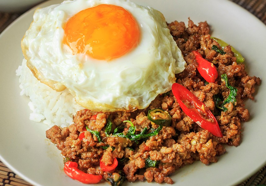 说起泰国街头巷尾最受欢迎的美食,泰式打抛猪肉饭绝对榜上有名。从街边摊到高档餐厅,从寻常百姓家到美食博主的视频里,都能看到它的身影。这道美食单吃时,通常会搭配一枚金黄焦脆的煎蛋;要是作为泰式宴席中的一道菜,煎蛋则可以省略。想体验最正宗的味道,一定要把辣度拉满 —— 辣椒不仅带来刺激的味觉体验,更赋予这道菜独特的灵魂香气。学会了它,在家就能轻松开启一场舌尖上的泰国之旅!