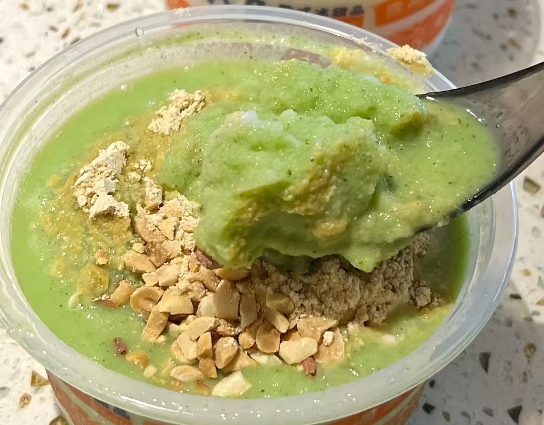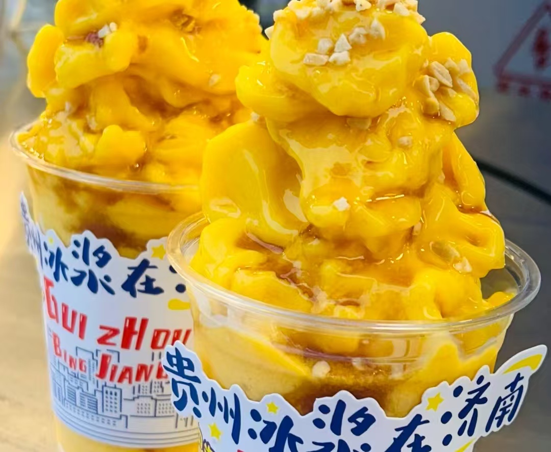 这些把冰浆卖火的商家,其实都有不少相似的 “生意经”。它们都主打贵州传统冰浆工艺,强调 “冰块 + 水果 + 糯米” 的经典搭配,安顺人用糯米防止冰浆快速融化的智慧,也被大家学了过来。像巧八角、徐记冰浆,还会特意打上 “贵州非遗小吃” 的标签,吸引食客。在制作上,它们大多采用 “机器打碎 + 手工调制” 的方式,这样做出来的冰浆既有绵密顺滑的口感,又能吃到糯米的颗粒感。在口味创新上,商家们围绕 “水果 + 谷物 + 奶底” 做文章,淡马茶坊的 “酸奶 + 冰浆”、去茶山的 “苦瓜柚子茶冰浆”,都是用新食材给传统冰浆注入新活力。
