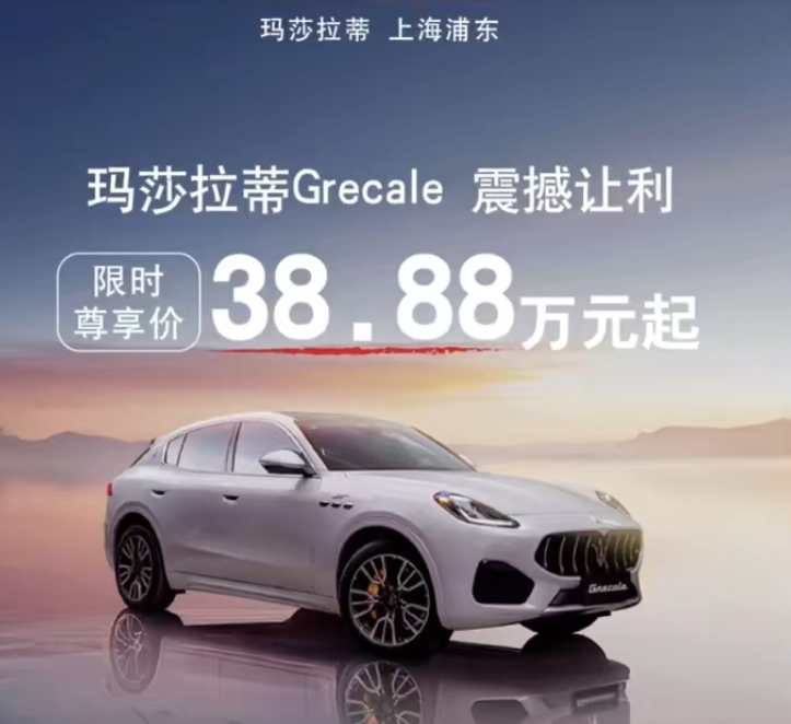 近日,一则 “玛莎拉蒂 SUV 车型 38.88 万元起售” 的消息在车市引发热议。名为 “上海浦东玛莎拉蒂” 的账号发布宣传海报,称旗下玛莎拉蒂 Grecale 车型推出限时尊享价,起售价仅 38.88 万元,活动截止至 9 月 30 日。