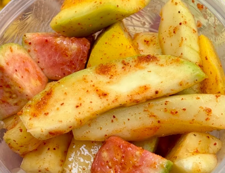 第二种:要是想现做现吃,那就试试即时调配法。水果切好后,直接放碗里,撒上椒盐、白糖,爱吃辣就加点辣椒面,再放点香菜,拌一拌就能吃。这法子快得很,十几分钟就能尝到美味,酸辣甜咸混在一起,一口下去太过瘾了。