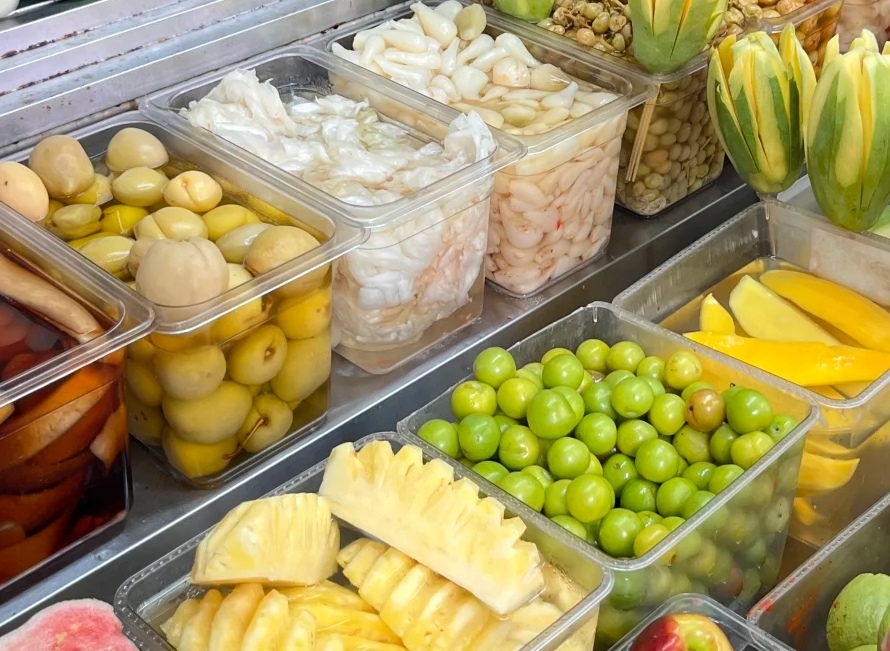除了这三样,青芒果、三华李、菠萝、桃子这些,都是做酸嘢的好材料。就连萝卜、黄瓜这些蔬菜,腌出来也各有各的风味。