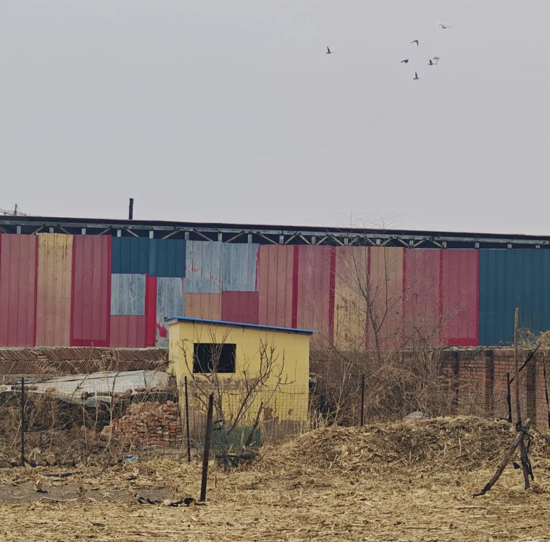 点评:此图以天空留白构建视觉“呼吸感”,斑驳的厂房与明黄的小屋形成三角稳定。前景枯草与建筑纹理呼应,天空留白消解了浓烈色彩的压迫感,诠释了留白对空间张力的塑造。