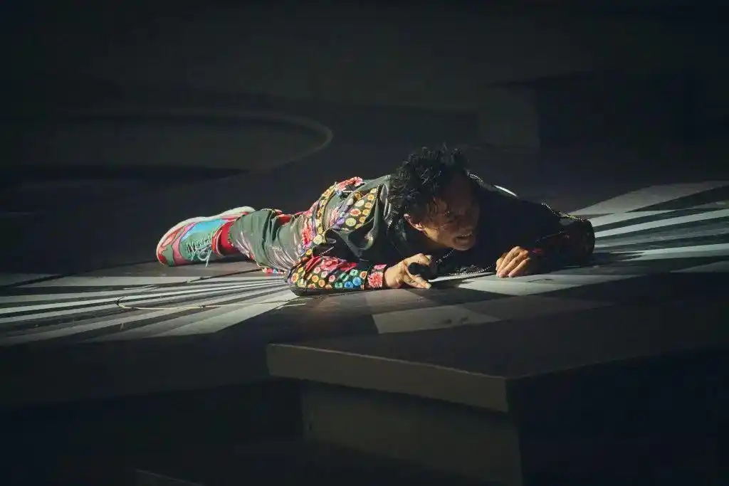 但陈奕迅真挺专业的。也就几秒钟,他就赶紧翻滚着爬起来,手里的麦克风还紧紧攥着,一点儿没耽误。他用手撑了下地,调整了下姿势,朝观众挥挥手说自己没事,接着就继续唱歌了,跟啥都没发生似的。不过细心的歌迷还是看出来,他的脚踝好像有点不得劲。