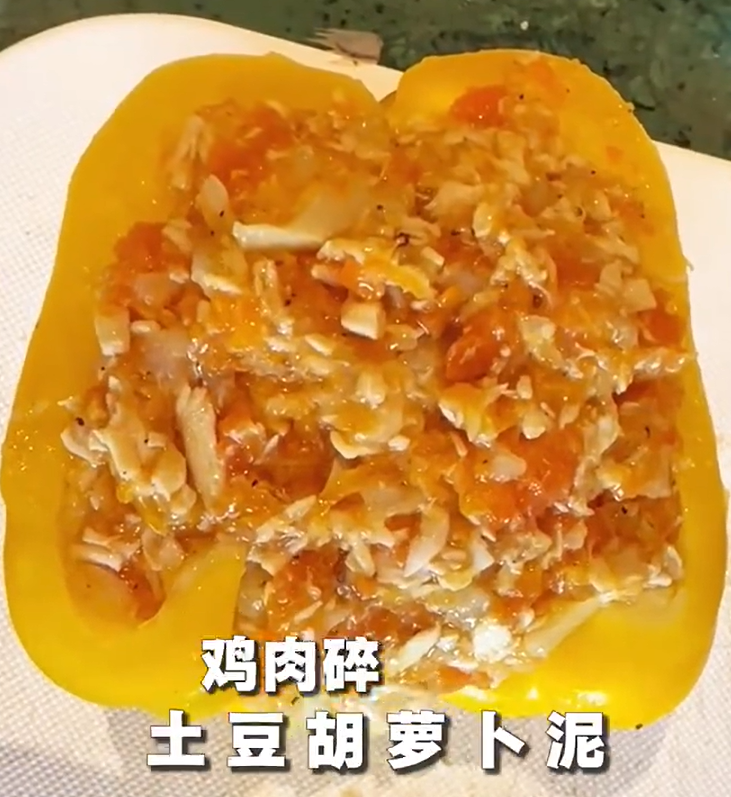 1. 处理彩椒 “碗”:挑那种表皮光溜溜、没烂斑的彩椒,洗干净后把顶部切下来一小截(大概 1/5 吧,别扔,能当盖子用)。用小勺把里面的籽和白色的筋挖干净,内壁抹点橄榄油,免得后面装东西粘住。放进空气炸锅 180℃烤 5 分钟,或者烤箱预热后烤 8 分钟,让彩椒稍微软一点就行。对了,烤之前记得在彩椒上扎几个小孔,不然加热的时候可能会 “嘭” 一下炸开。