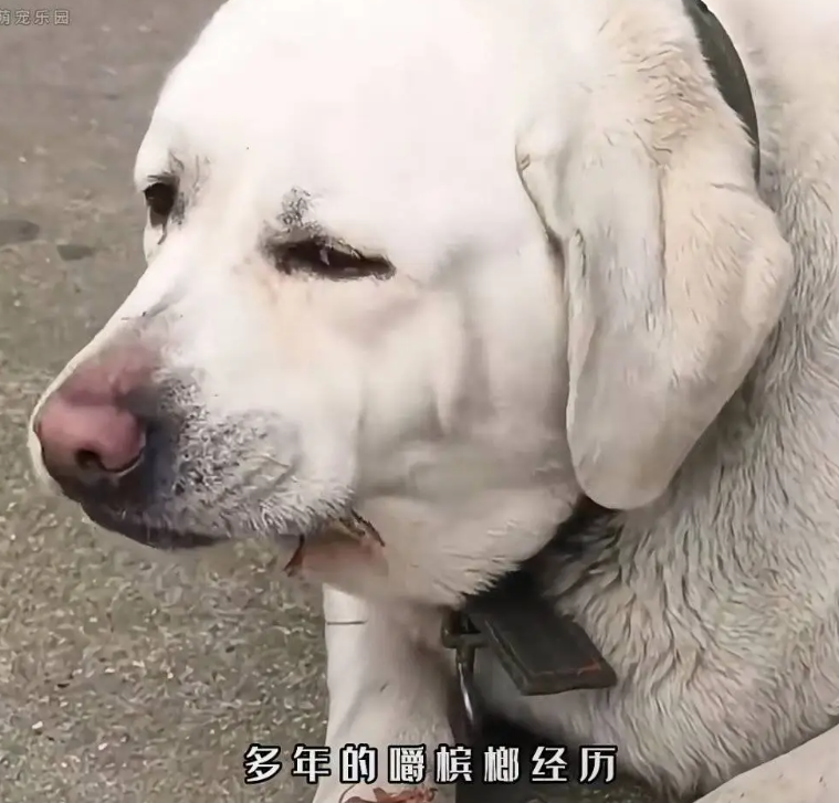 视频里,一只白色的拉布拉多安安静静地坐在镜头前,主人拿出槟榔,它就主动凑过去闻,然后用牙接过槟榔嚼了起来。博主还配文说:“我家宝贝的最爱,一天不吃就闹腾。” 这视频有近 5 万的点赞量,不过评论区里可不太平,好多养宠物的人都担心地问:“这真的不会害了狗狗吗?”