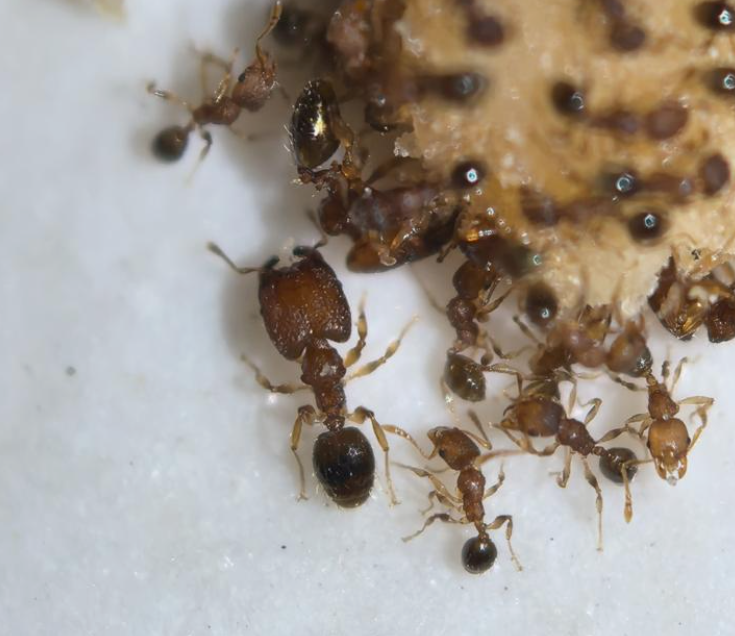 • 给幼虫喂普通的蚂蚁尸体也没事,大概是昆虫的消化道有层膜,能挡住病菌,它们因为吃东西生病的情况其实不多。