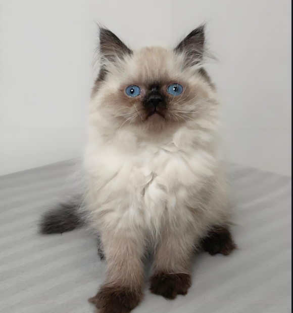 喜马拉雅猫是波斯猫和暹罗猫的混血,特别又可爱。它们有着波斯猫那样长长的绒毛和扁扁的脸,耳朵、脸、爪子和尾巴却像暹罗猫一样带点深色的 “重点色”。这种猫性格温顺,跟谁都合得来,养在家里很舒心 —— 就是打理它那身毛得费点劲。