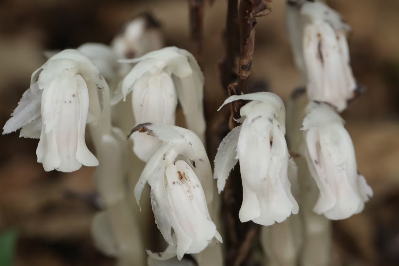 别看名字带 “兰”,水晶兰跟兰花半点关系没有,反倒和杜鹃花是亲戚。最奇的是它通体雪白,连一片绿叶都没有 —— 因为它根本不用晒太阳 “吃饭”。