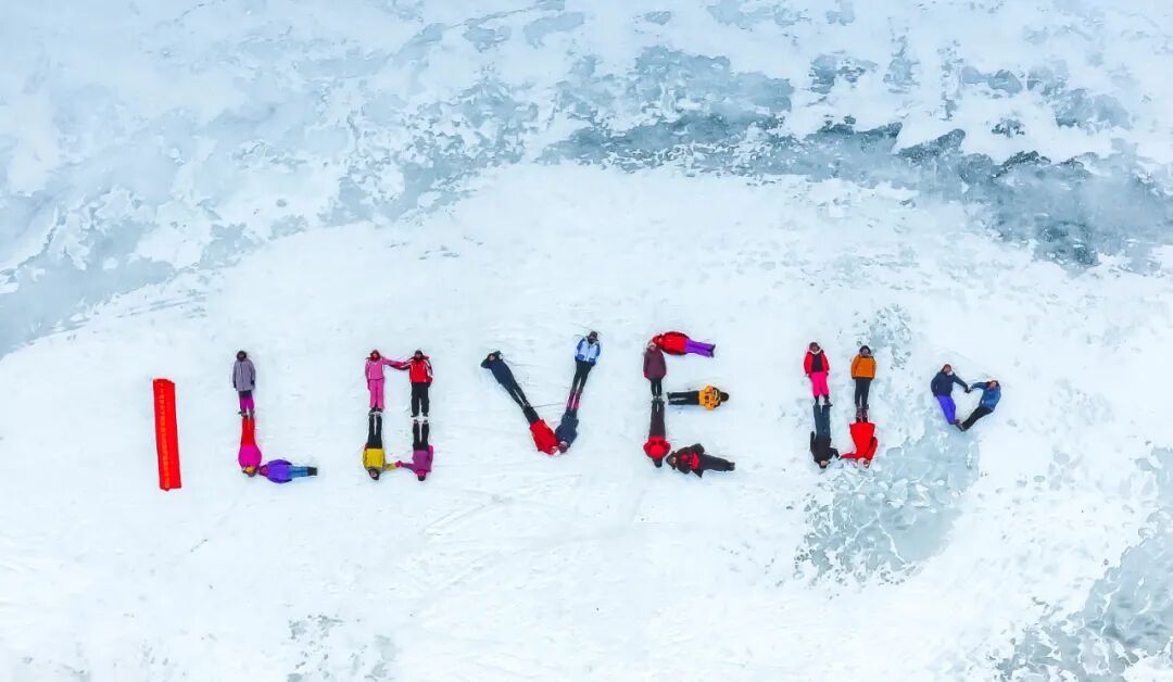 点评:画面中的合影具有创意性,同时作者在取景角度上将这种创意性充分彰显——空中俯拍简约画面,抽象视觉元素,并让拼合而成的字母更加凸显、形象,富有吸引力。