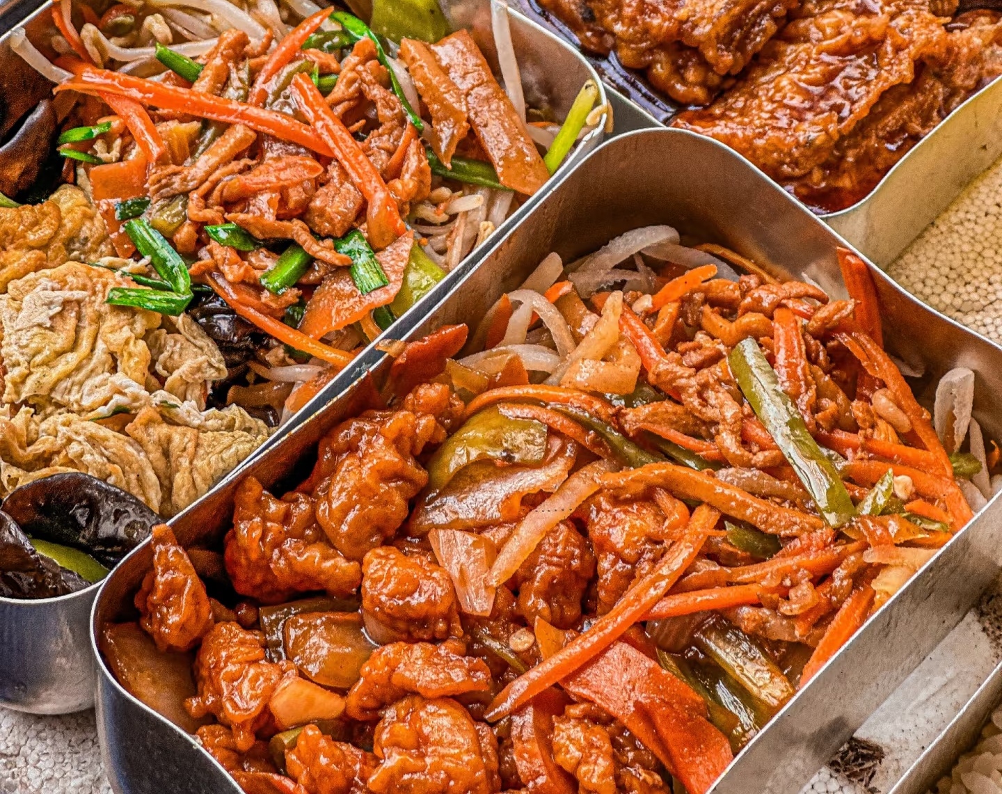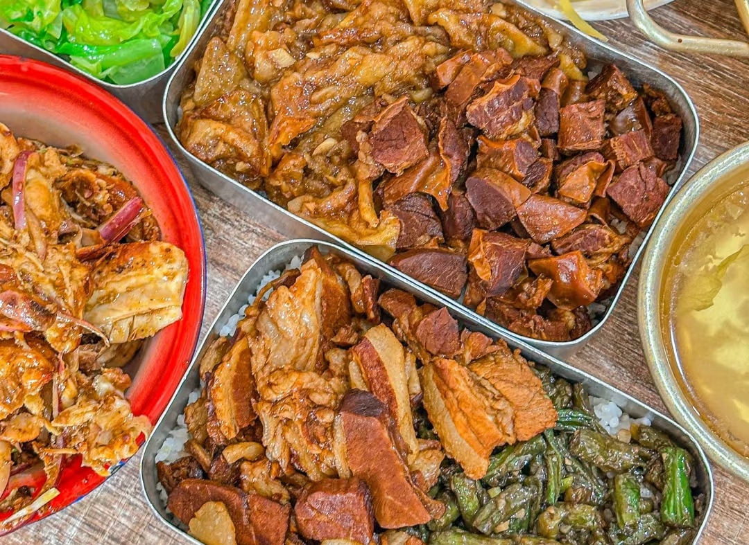 一进盒饭铺,长长的餐台摆满几十种菜,荤素冷热啥都有。荤菜里,锅包肉金黄酥脆,酸甜汁儿裹得足足的;熘肉段外焦里嫩,咸香入味;红烧肉炖得油亮,肥的不腻、瘦的不柴。素菜也不糊弄,烧茄子吸饱了汤汁,配米饭能多吃两碗;地三鲜里的土豆面面的,茄子软软的,青椒还带点脆。夏天有爽口的凉拌菜,冬天有热乎乎的炖菜,偶尔还能吃到粘豆包、酸菜饺子这些东北特色,总能找到合胃口的。