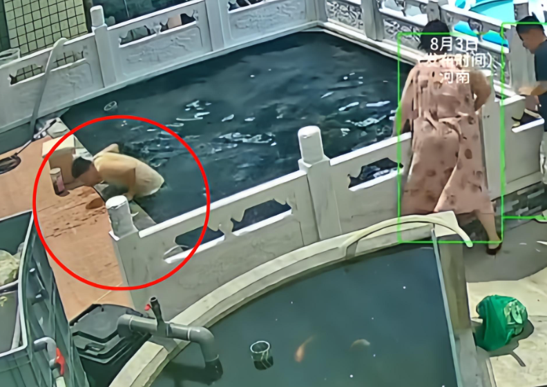 说真的,这场景挺吓人的。从大哥落水后的样子能看出来,这鱼池水深得很,一个成年人在里面都能踩水。