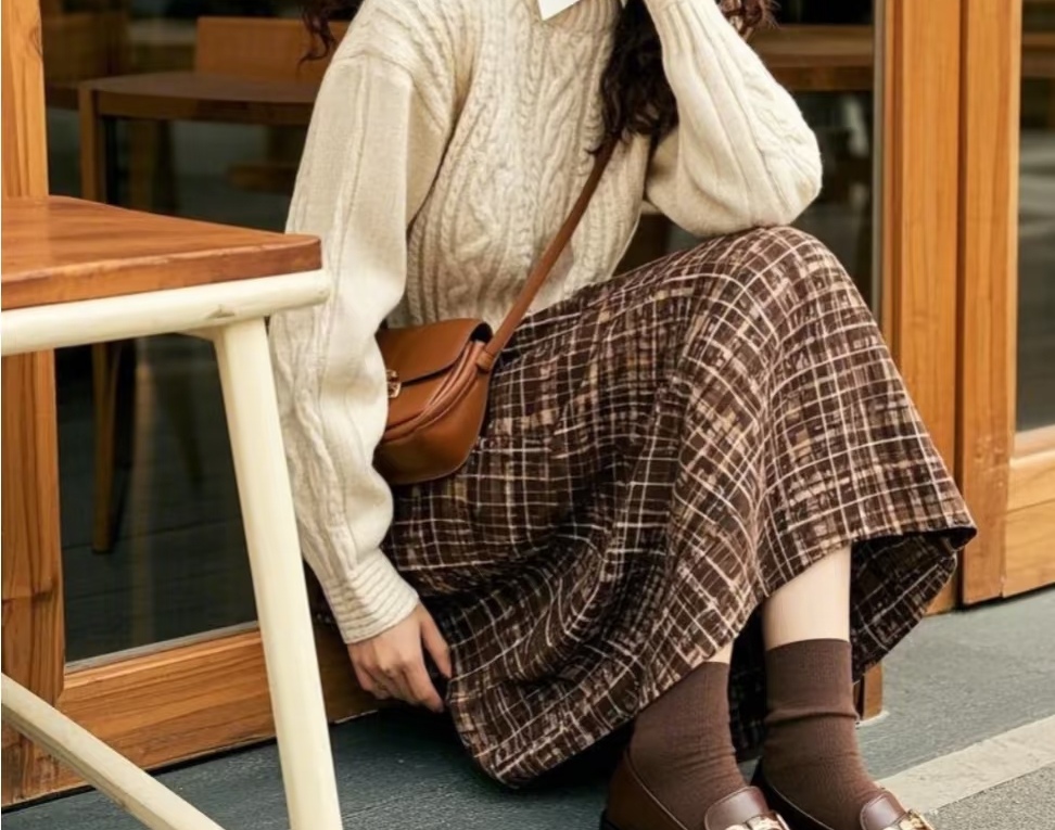 格纹裤也是,搭不好就显得乱糟糟的。想穿得随性又好看,记住两点:上装简单点,线条利落点。选件纯色的上衣,像黑色紧身针织衫或者白色 T 恤,让格纹裤当主角,就不会显得乱。高腰的格纹阔腿裤配短款上衣,露出点腰,再穿双尖头短靴,腿看着老长了,特别精神。要是格纹比较密,就搭件同色系的外套,整体颜色统一,看着就很大方,不经意间就挺时髦。