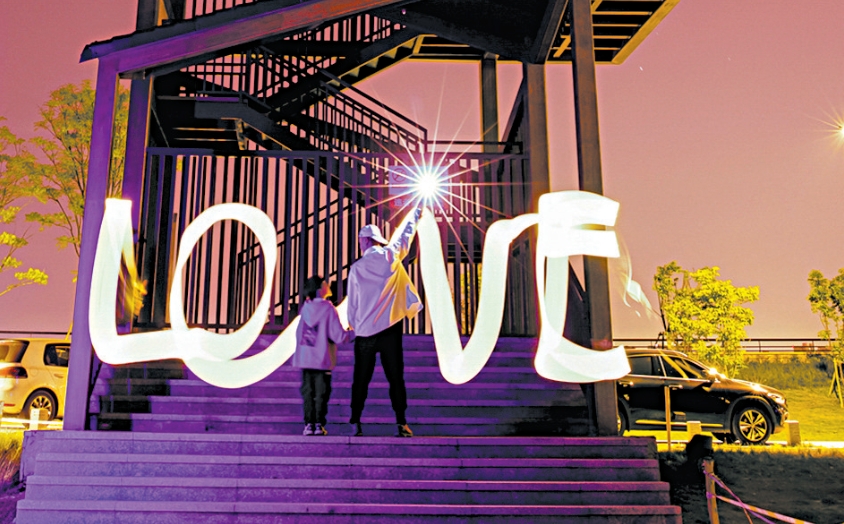 无人机光绘摄影就是利用无人机自身臂灯的发光,或者搭载相关发光配件,在空中绘制美丽的图案,用相机慢门记录下来。但实操起来有一定的技术难度与安全把控问题,且需要摄影师巧妙的构思设计,可以单独完成或由多人协作共同完成。