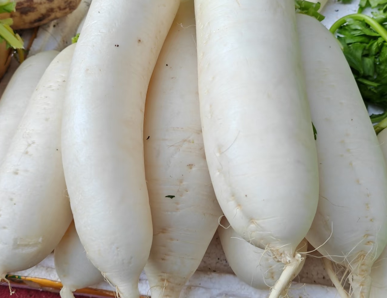 白萝卜有 “小人参” 之称,含淀粉酶、芥子油和膳食纤维。淀粉酶助消化,减轻肠胃负担;芥子油促胃肠蠕动、增食欲,还能扩张血管;膳食纤维吸附肠道有害物质并排出。可生吃也可熟吃,生吃营养保留更好,熟吃更易消化,煲汤、炒菜都不错。