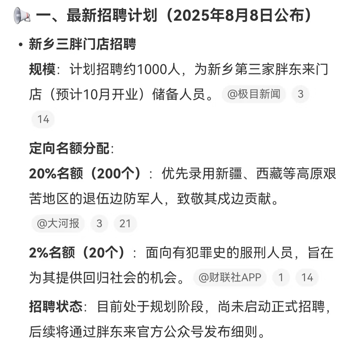 其实,法律早规定,刑满释放人员和其他人有平等的就业权。但很多地方暗地不想要他们,胖东来明着招,是在打破这种不公平,挺有勇气。