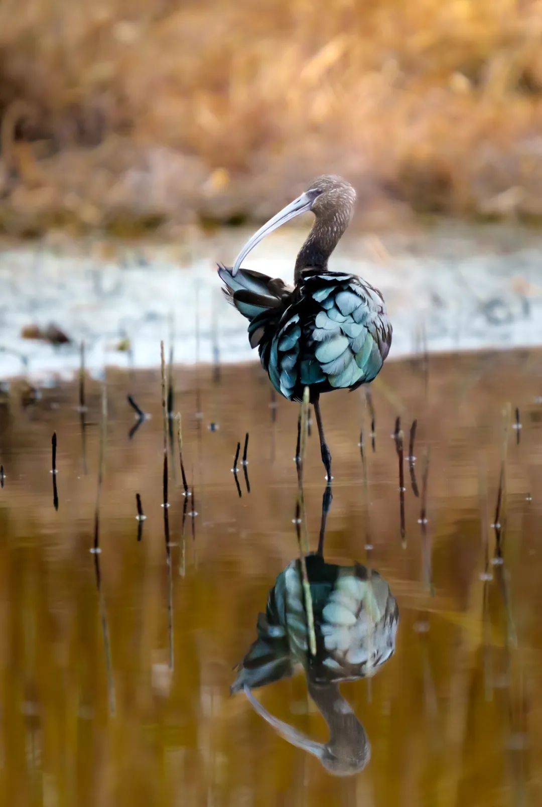侧逆光下的彩鹮,画面没有受到眩光影响而出现“灰雾”,主体细节清晰,锐度和对比度都很高。