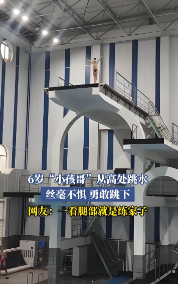 10 米高的跳台,差不多就是三层楼那么高。换作咱们大人站上去,腿肚子都得打颤,可上海有个 6 岁的小男孩,在这儿给大伙儿露了一手绝的。
