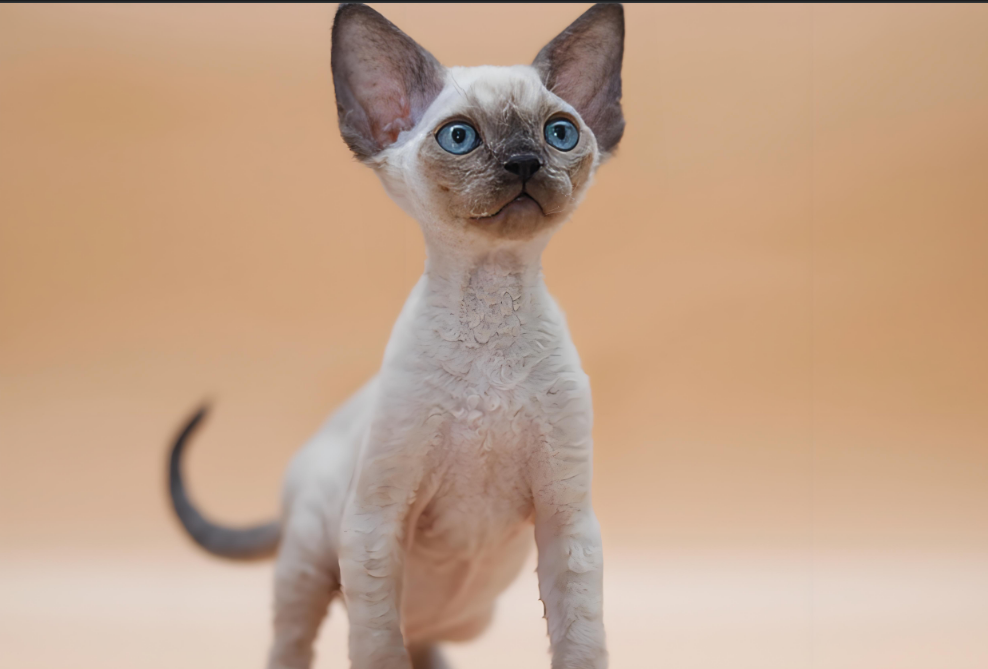 德文卷毛猫体型偏小,体重一般在 3 到 4.5 公斤。大家常叫它们 “猫界贵宾犬”,看毛发就知道为啥 —— 毛毛是丝滑的卷儿或波浪形,这叫 “卷毛特质”。