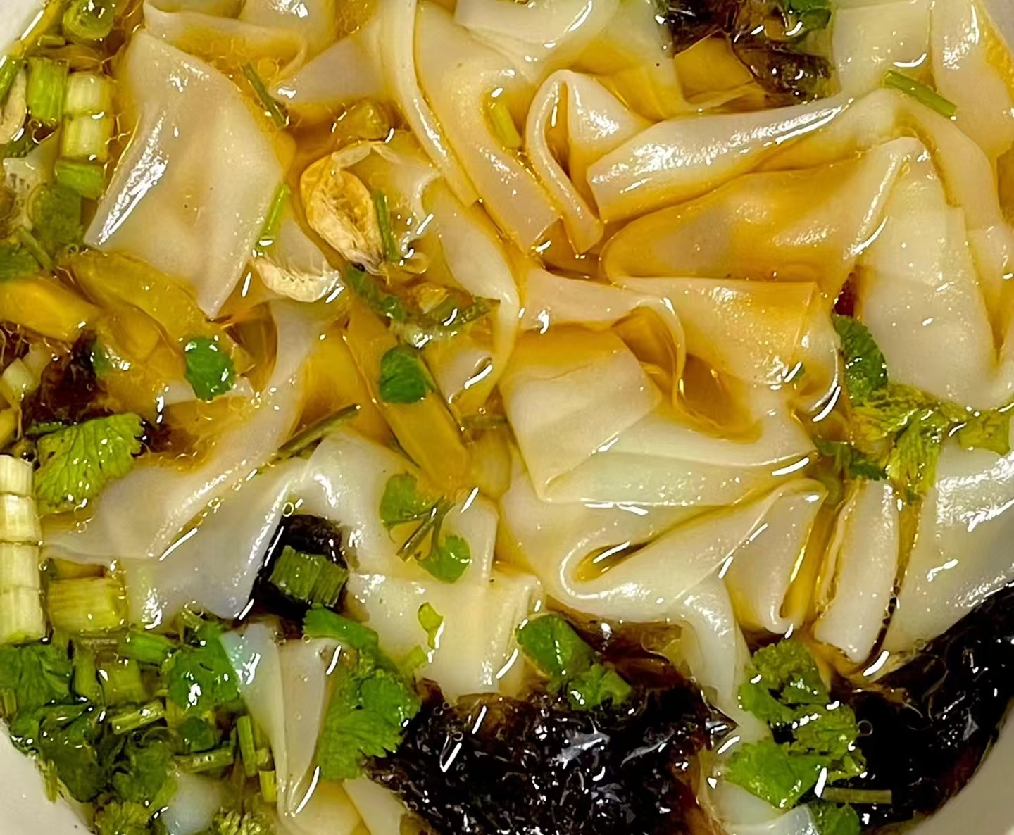 锅里烧开水,放馄饨皮煮到浮起,捞出过凉水,口感更筋道。另起锅,倒排骨汤或清水,放青菜、火腿肠,打个鸡蛋,煮开后放生抽、香油、葱花,最后放进馄饨皮搅匀即可。这 “汤面” 很鲜,馄饨皮薄,吸足汤汁,暖心管饱,简单好吃。