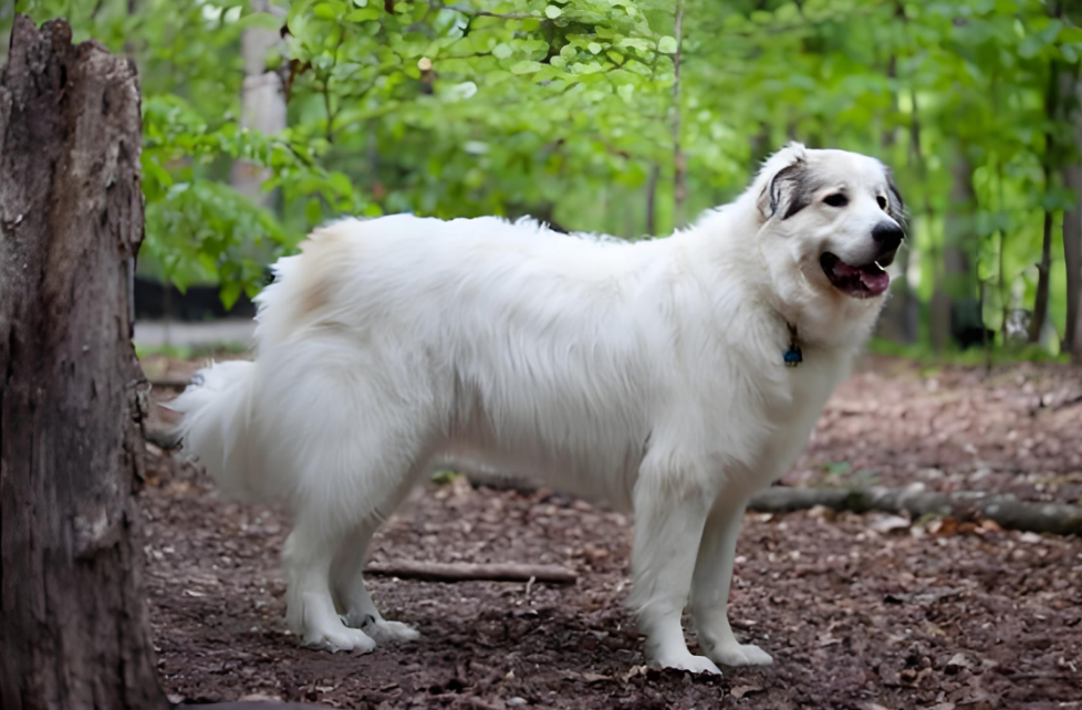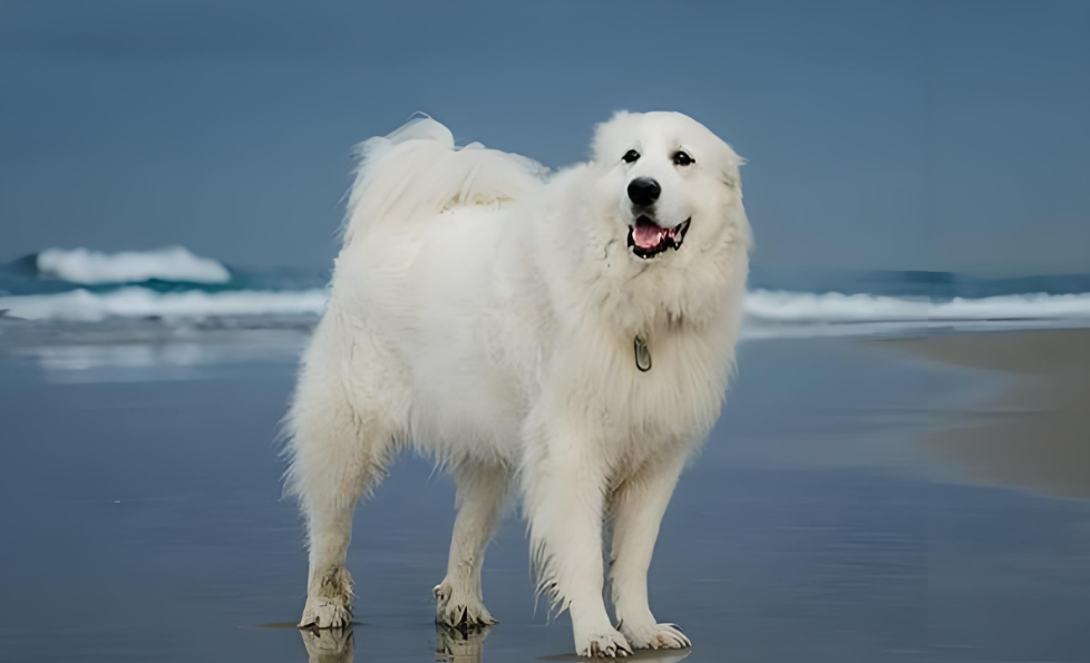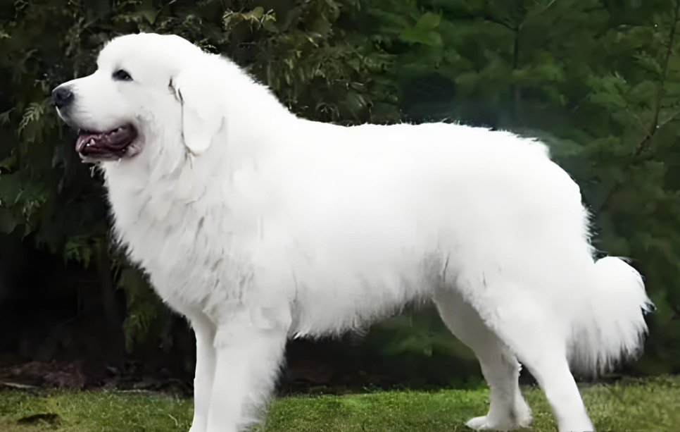 大白熊犬是种体型超大的狗狗,最早是养来看着牛羊这些牲口的。它那一身厚厚的白毛毛特别显眼,在雪地里能藏得好好的,方便它在山里护着牲口,不让野兽来捣乱。