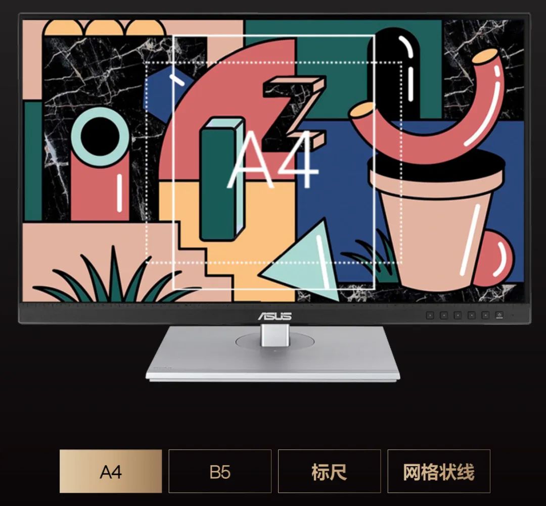 创艺27 4K具备华硕独有的QuickFit功能,可以在显示器上显示不同纸张尺寸大小,方便创作者直观体会不同规格下作品的实际效果。