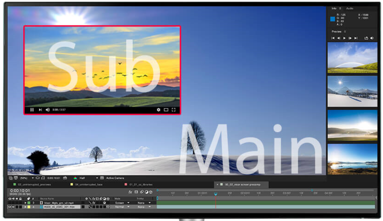 还有一个让我印象深刻的功能就是,这个显示器可以显示两个信号源的内容。它有一个“PIP/PBP模式”,可以把屏幕分成两块分别显示,或者在大屏幕的一角叠加显示。我很喜欢这个功能,尤其是在和朋友交流照片或者评选照片时,直接把他的笔记本连接到显示器上就可以,不用再找硬盘来回地拷贝照片了。