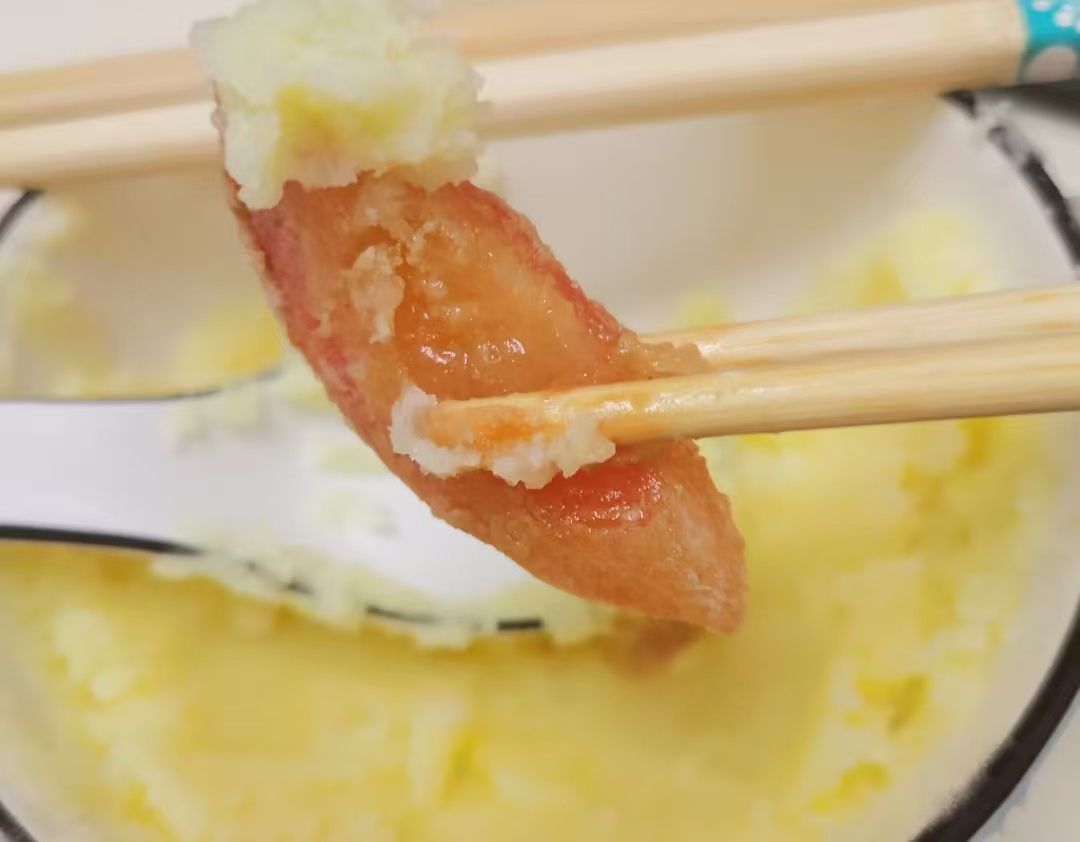 其实大家觉得怪,无非是平时吃惯了老搭配。番茄嘛,不是搁鸡蛋里炒得沙沙的,就是切进沙拉里当酸甜担当;土豆呢,不是炖得面乎乎,就是捣成泥拌着黑胡椒吃。突然把生脆的番茄条往土豆酱里蘸,就像让冰棒蘸老干妈似的,第一反应肯定是 “不合适”。
