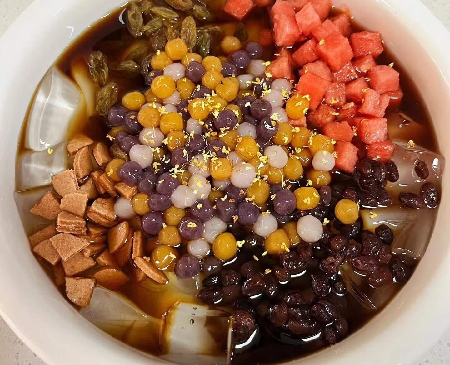 甜口凉皮则在江南受欢迎,苏州、无锡的凉皮更薄更软,酱汁里加白糖或桂花糖浆,甜度适中,刚好中和醋的酸味。有些店家还加榨菜丁、花生碎,甚至淋一勺红豆沙,甜中带咸、咸里透鲜,满是江南的细腻。无锡老菜场旁,卖凉皮的老奶奶总说 “夏天吃甜的不腻还解暑”,引得排队食客连连点头。