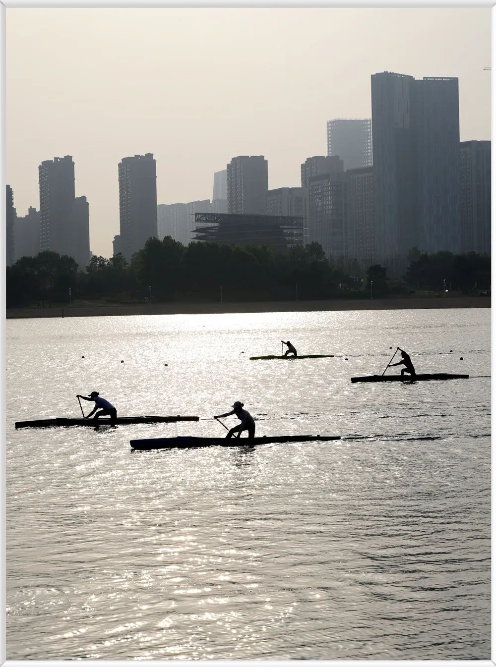 2024年5月23日,山东日照,奥林匹克水上公园,划船的人们。