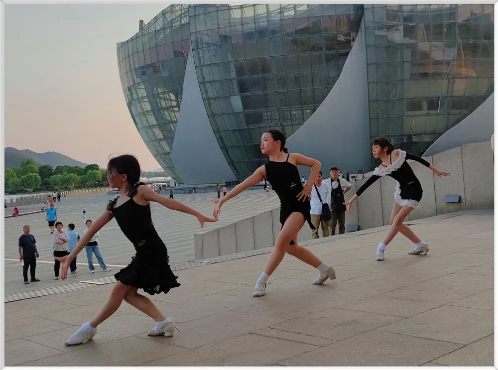 2024年5月27日,江苏徐州,云龙湖音乐厅广场,孩子们在表演拉丁舞。