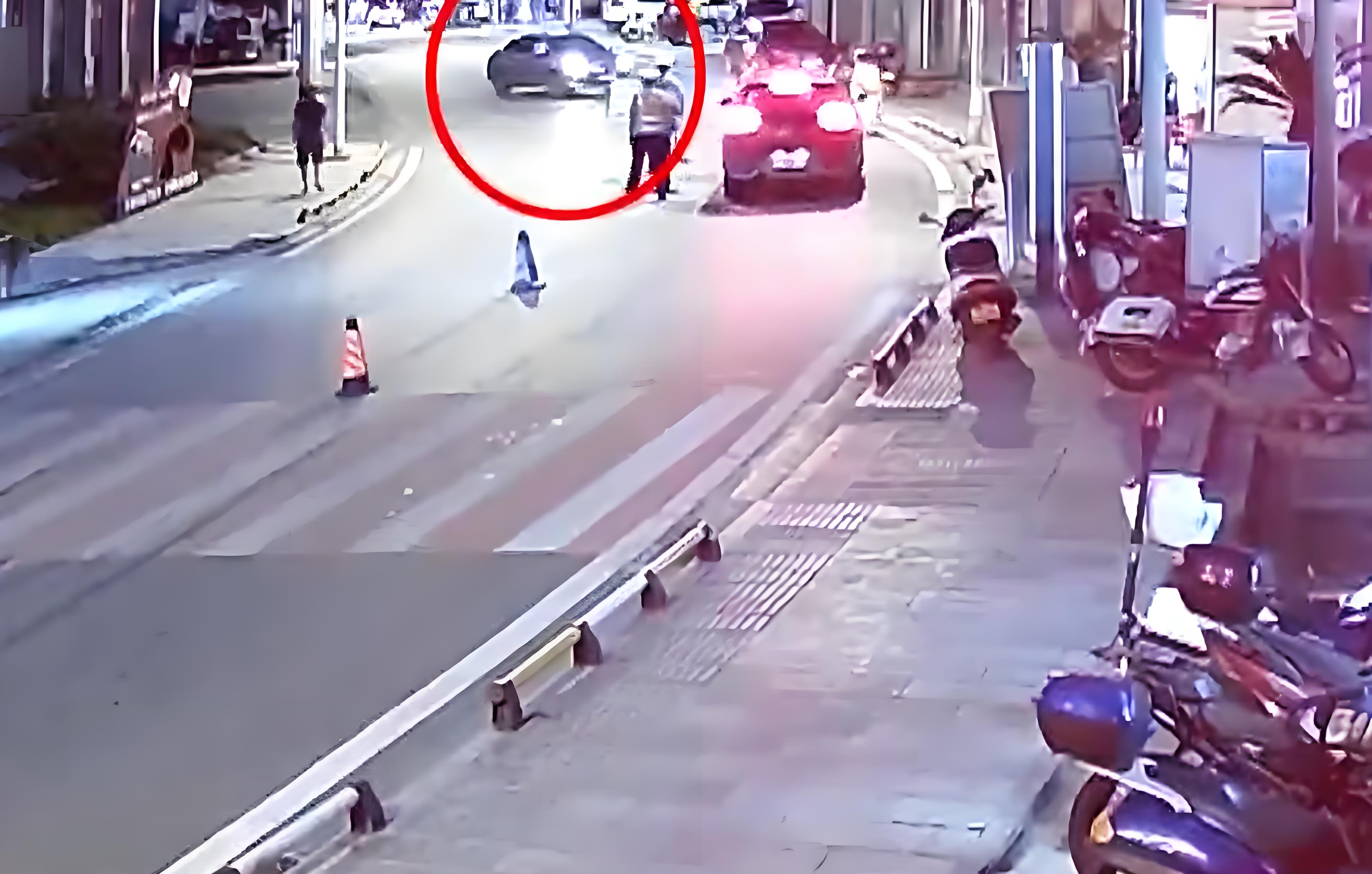 当天晚上8点多,在鹤峰县容美镇九峰大道交警大队门前路段,驾驶人陈某在发现前方交警设卡查酒驾后,非但没有停车接受检查,反而猛踩油门,驾车强行冲过执勤卡点,仓皇逃窜至附近巷子。