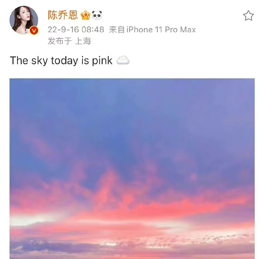 2025 年 9 月 16 日清晨,陈乔恩在社交平台晒出粉红云海照,配文 “抬头见这片粉云,感觉你在对我笑,老友念你”。这已是她连续第九年,用这样的方式悼念挚友乔任梁,九年不变的粉色天空,成了跨越生死的友情约定。