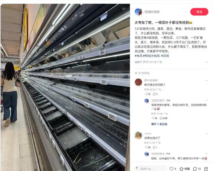 超强台风 “桦加沙” 马上就要影响广东啦!9 月 22 号的时候,记者去深圳的超市逛了逛,发现不少货架都被抢空了,唯独剩下了辣椒没怎么动。