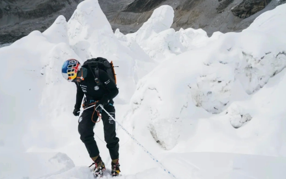 第二天一早,他接着滑。过昆布冰瀑的时候,头顶的冰塔晃来晃去,脚下的雪随时可能塌,但他没停。最后,他一路滑回大本营,全程没摘过雪板,还没带氧气瓶 —— 这事儿,全世界没人干成过。