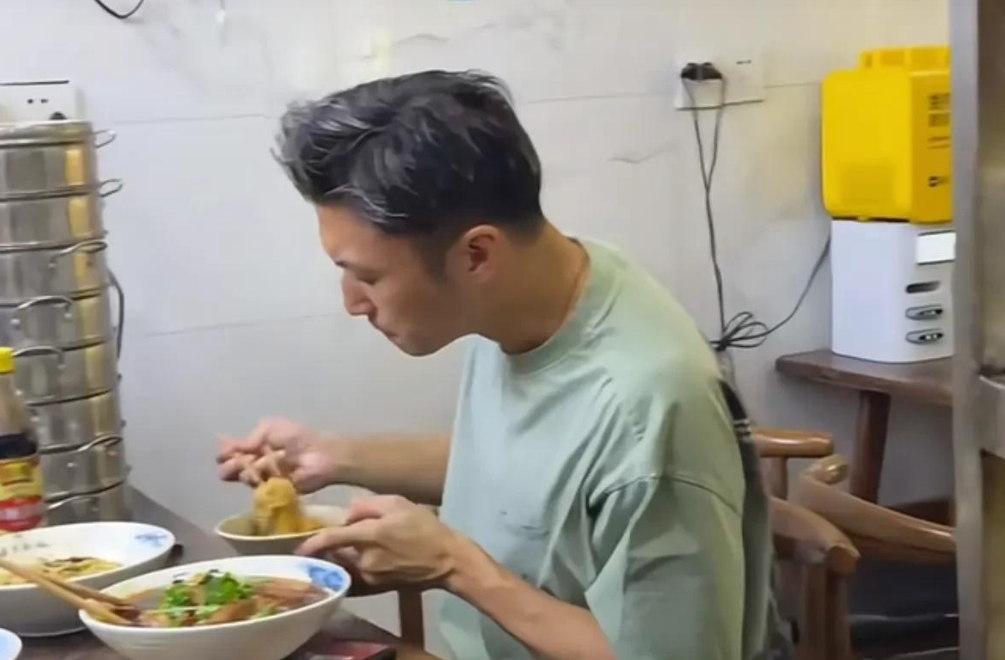 另外,视频里的人没化妆,穿了件浅绿色的短袖,配着条运动裤,打扮得特别家常,跟他平时在舞台上又唱又跳、闪着光的样子完全不一样。面馆老板也特别热情,特意蹲在他旁边,跟他细细讲重庆小面是咋做的,俩人聊得挺投缘,看着就跟普通人唠家常似的,特别亲切。