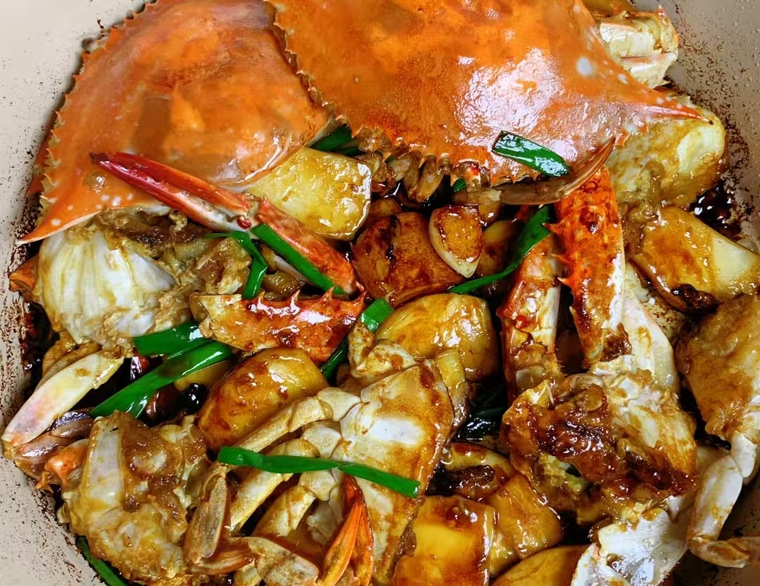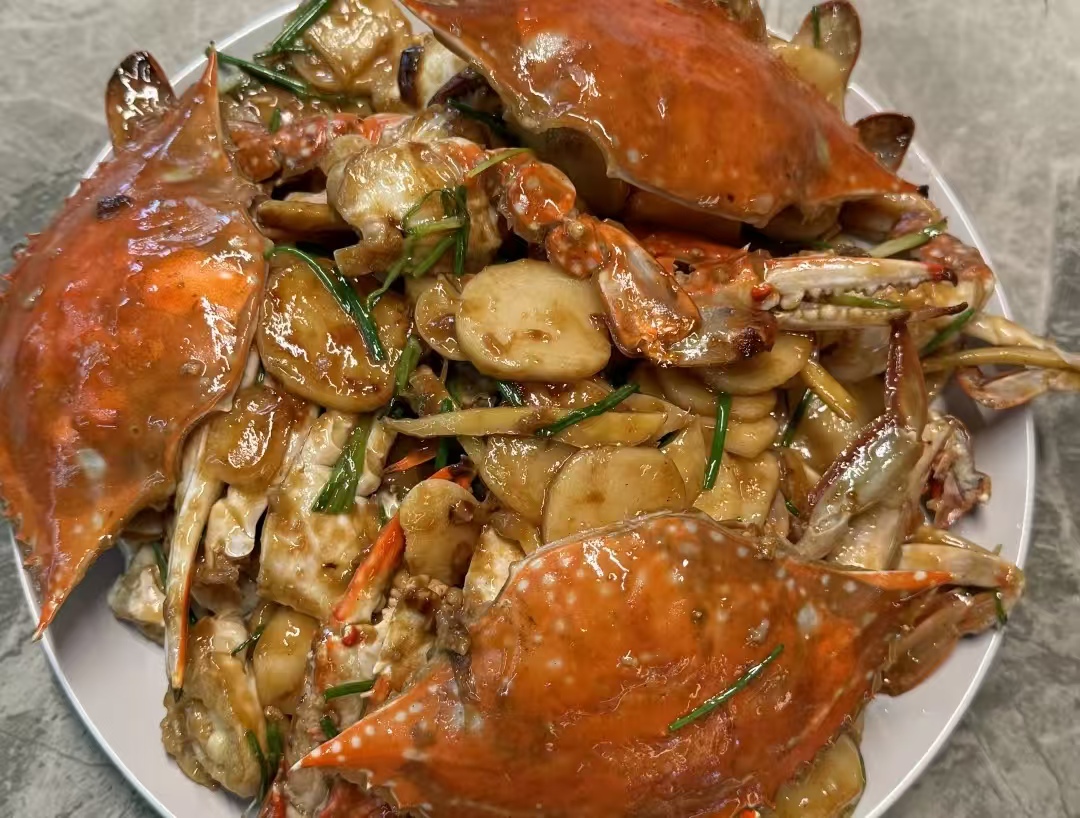 待葱姜香飘满厨房,把炸好的蟹块倒回锅,大火快速翻炒几下,加一勺生抽提鲜、半勺料酒去腥味,再淋点清水,盖锅焖两分钟。揭开锅盖的瞬间,热气裹着蟹鲜与葱姜香扑面而来,蟹肉吸饱汤汁,愈发饱满。夹起一块剥壳,雪白的蟹肉裹着浅褐汤汁,送进嘴里,先有葱姜的香在舌尖散开,接着是蟹肉本身的鲜甜,细细嚼着,还有汤汁的咸鲜,满是秋天的馈赠。